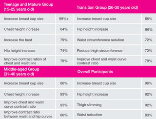 The 60 participants were divided into different age groups, thus confirming that functional underwear has different effects on female body shapes at different stages.