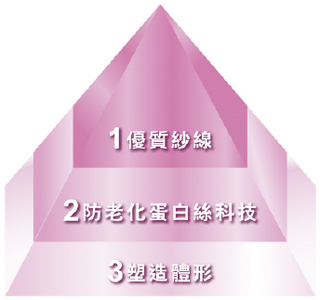 防老化蛋白絲科技:活化血液循環的功效,達到提高新陳代謝及免疫力,改善失眠,使經期回復至正常及減低經痛、減少脂肪,保濕及有抗衰老等保健美容功效。紡織系的科研人員已經在紗線的層面上製造出以保護肌膚為目標的布料。在穿內衣的過程中,可以完全避免對肌膚的脫水、老化等破壞。