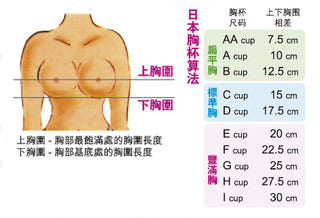 量度尺碼的時候,首先脫去胸圍,量度上胸圍及胸下圍的數字 (下圖示),然後將兩個數字相減,若相差少於10cm便屬於A杯,每增加2.5cm,就會增加一個杯位。
